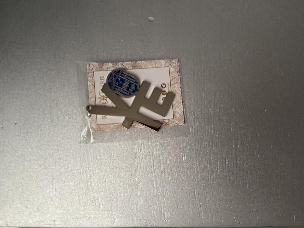 Purse charm / keychain with the Zeta Phi Beta Sorority shield in the word VOTE Measures 2 inches x 1.5 inches